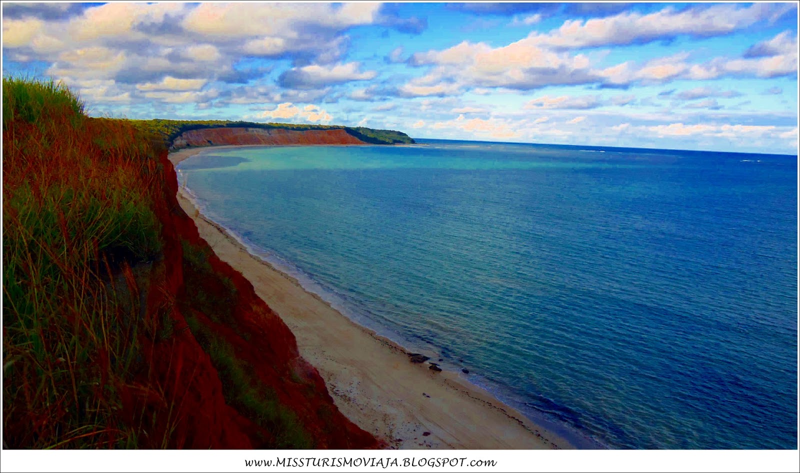 A dificuldade para encontrar a praia logo é compensada pelo visual deslumbrante que ela oferece. Águas azuis, muita vegetação, coqueiros, areia clara e um enorme paredão avermelhado fazem do lugar um excelente ponto para descansar e curtir a natureza.